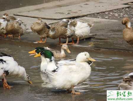 二、夏季:天氣炎熱,要注意防暑降溫。夏天鴨群產蛋率會下降,應適時關蛋,強制鴨子換羽,促使提高秋季產蛋率。夏季放牧時應注意:①中午不能在淺水田里放牧,應選擇有樹的深水塘邊休息。在上午10點半以前、下午4點以后水涼時放牧。②夏季白天氣溫高,不要把鴨子趕到公路上去。夜里氣溫悶熱,應把鴨子放在舍外用網罩好,露天乘涼。將用竹子做的水槽、食槽,放在罩網里,并加喂涼水。