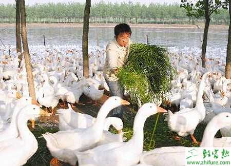 4.晚間12點左右應再投草一次飼喂黑麥草,并搭配一部分精料,可加速鵝的生長和增肥,縮短肉鵝的飼養期。